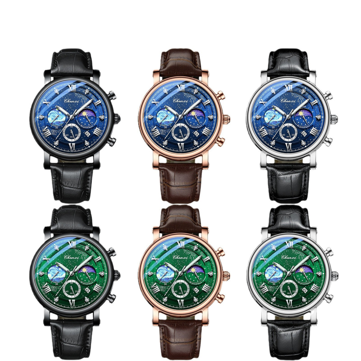 Multifunctional Luminous Moon Phase Calendar Watch - Silver Case Blue Face